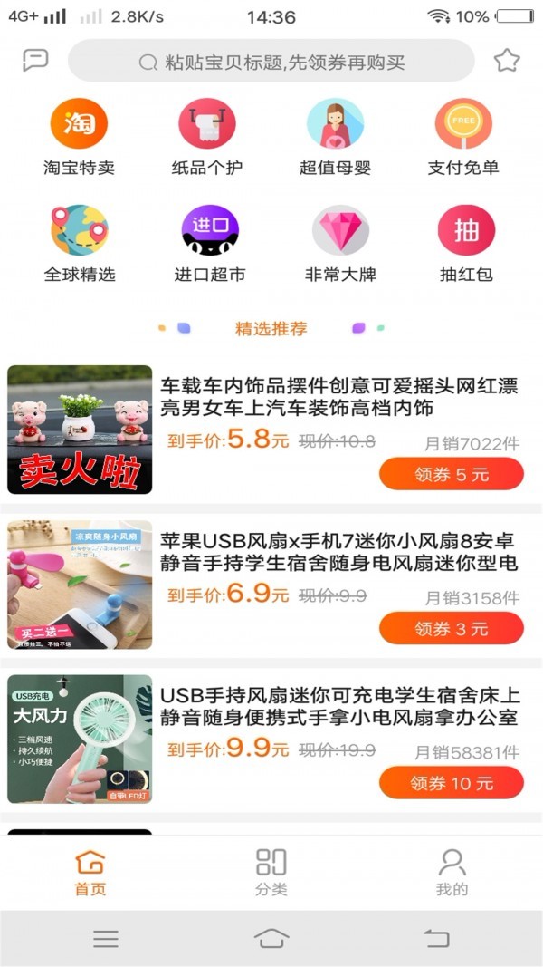 4.每天人工精选优质好货推荐,优惠商品早知道,天天领红包,精细化商品分类;