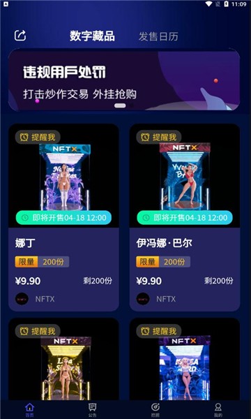 1、墨语数藏帮助用户展示超多数字藏品的发售时间,在这里查看详细的发售日历