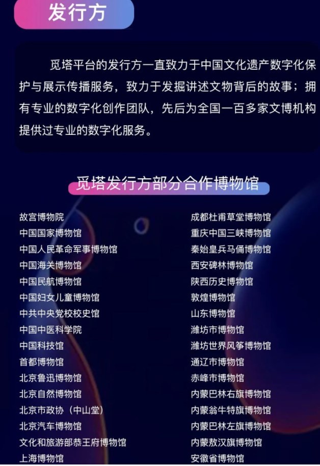 1、觅塔的每套数字藏品都是有详细介绍的,更好的在线进行数字藏品购买
