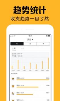 3、智能统计:清晰饼图图表展现各类支出收入,结余和汇总信息,账目心里更有底。