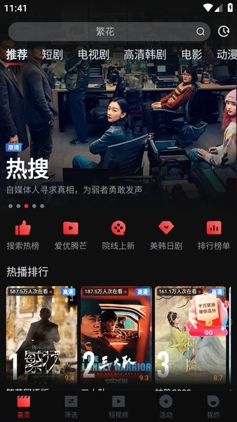 5、网罗海内外海量正版高清影视,24小时不间断滚动更新;