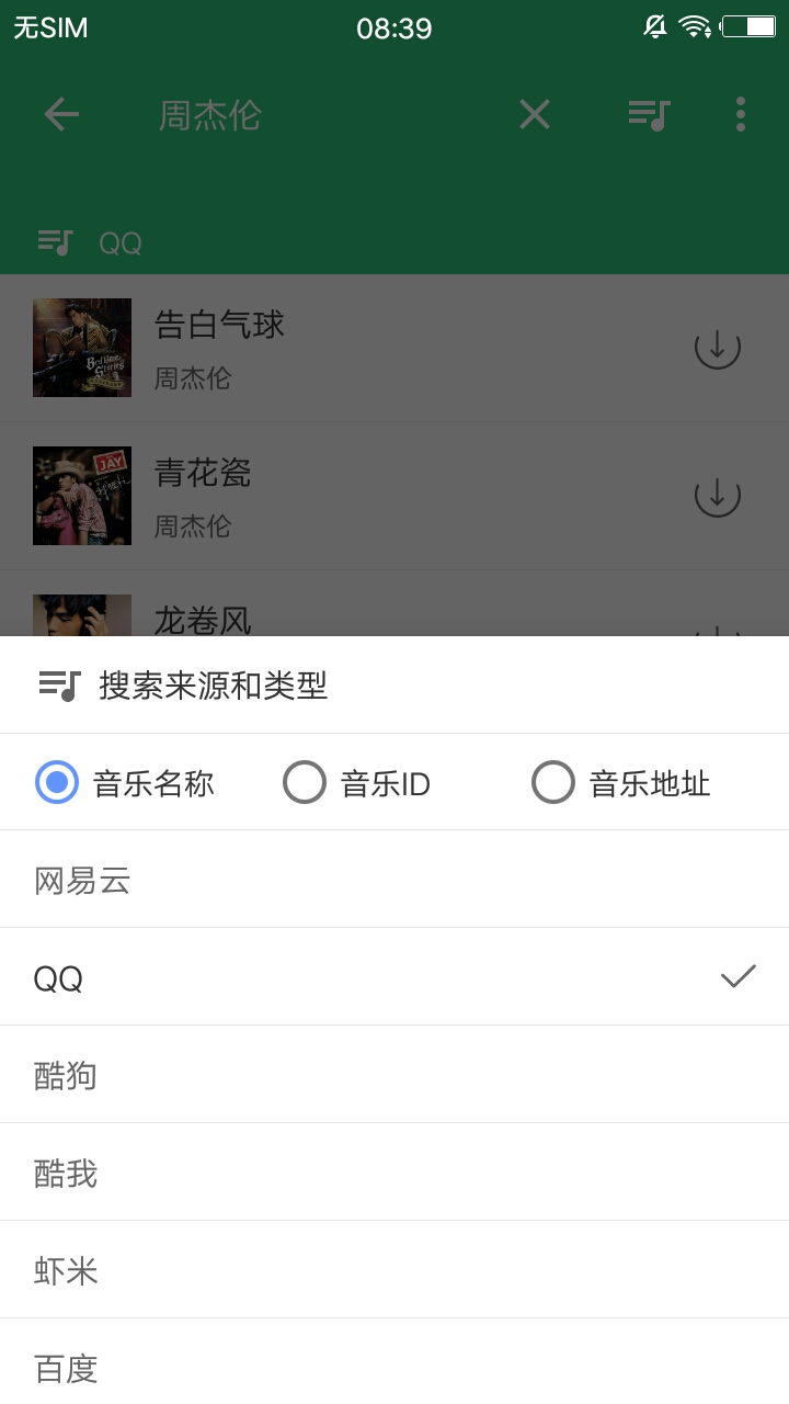 3、支持多平台搜索,例如酷狗音乐、酷我音乐、虾米音乐等等。