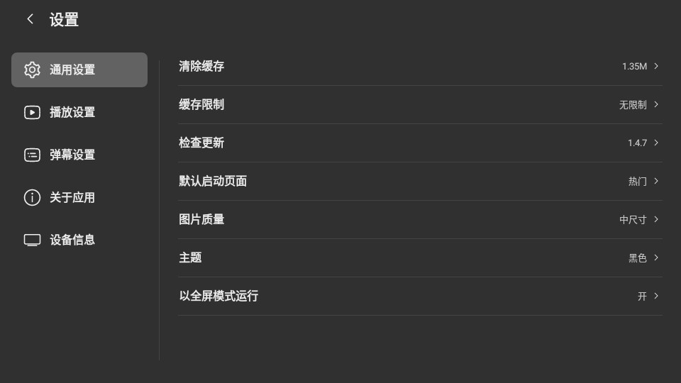 7、最后点击首页左下角齿轮状按钮,玩家可以自定义设置通用设置、播放设置、弹幕设置等等;