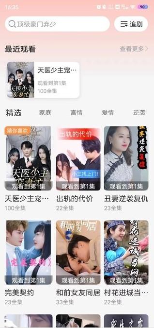 1、短剧搜索:用户可以在软件上通过关键词或者分类搜索短剧,方便快捷
