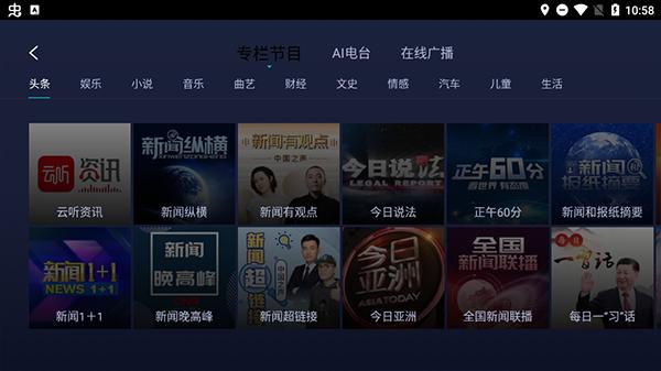 2、当然,点击主界面的“全部”按钮即可看到其实在这里主要就是提供了专栏节目、AI电台、在线广播这三大类