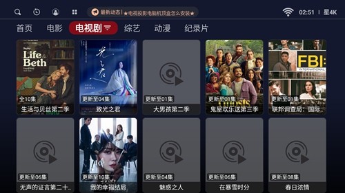 星4K实时更新的的全网最新影视资源,包括电影、电视剧、综艺等,用户可以通过搜索或分类浏览来找到自己想看的内容。