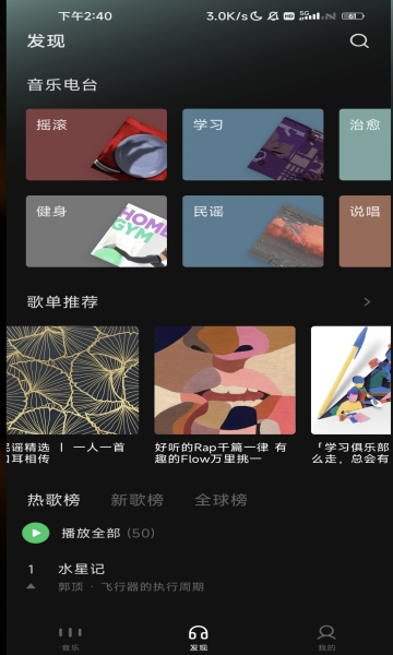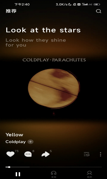 2.简洁顺滑的交互设计,无需复杂操作,点开就能快速享受好音乐
