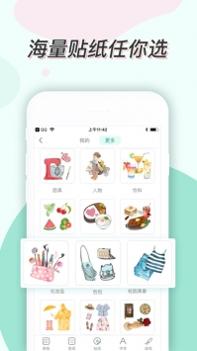 2、海量素材,超多壁纸、贴纸、胶带等素材;