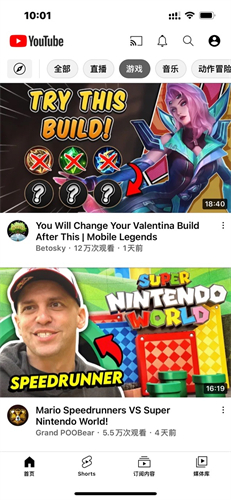 1、首页功能:YouTube的首页支持探索,你能通过分类时下流行、音乐、直播、学习、游戏、新闻、体育、时尚和美容来观看不同的视频;在首页还能滑动屏幕,平台会为你推荐你可能喜欢的视频。