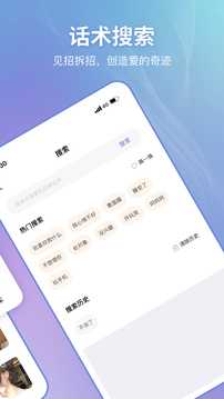 1、恋爱话术搜索:提供成千上万的恋爱话术供用户搜索和参考,覆盖各种场景和话题,帮助用户轻松应对恋爱中的聊天挑战。