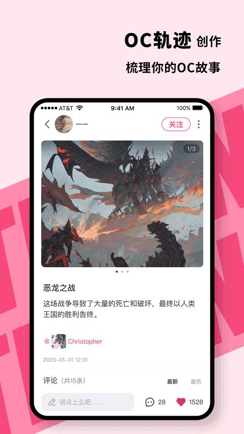 3、用户可以关注自己喜爱的原创作者或OC角色,获取对方的新作品内容和动态,同时也可以通过私信与好友保持联系。