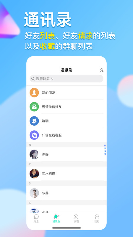 1、在线与自己的好友进行各种信息的发送,交流工作上的问题。