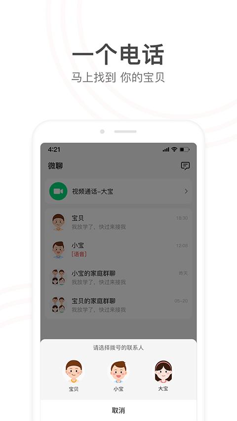 2、在功能页中亲情沟通版块的下方找到”通讯录“,并点击进入下一步。