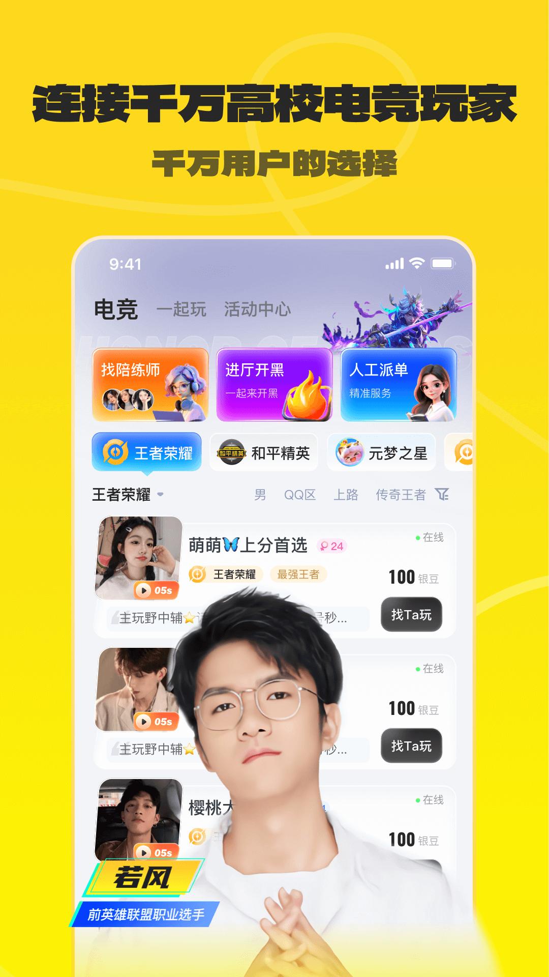 在这里约玩热门网游和技术高超的游戏玩家一起开黑超神;