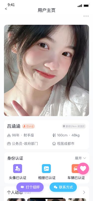 2.大量年轻用户,点击即可查看个人信息和兴趣页,感兴趣就开启一键聊天