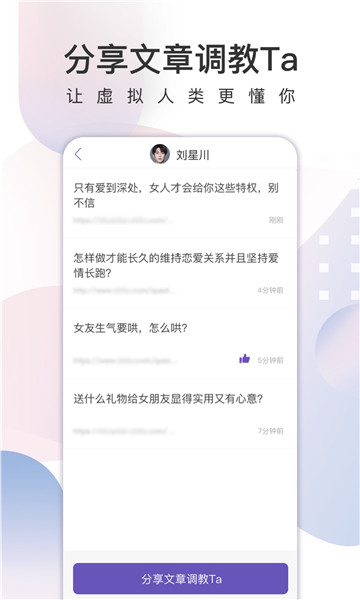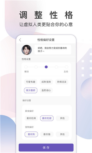 2.它可以与用户进行聊天、分享文章、进行游戏等,为用户提供一种全新的互动体验。用户可以根据自己的喜好对虚拟人物进行设置和训练,使其更贴近自己的偏好和需求