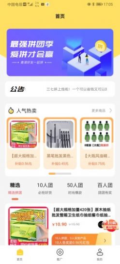 三七拼,省钱又赚钱的团购平台,首页展示人气热卖等产品,分享给好友一起赚取收益,赶紧呼朋唤友一起来购物,一起分享购物赚钱的喜悦!