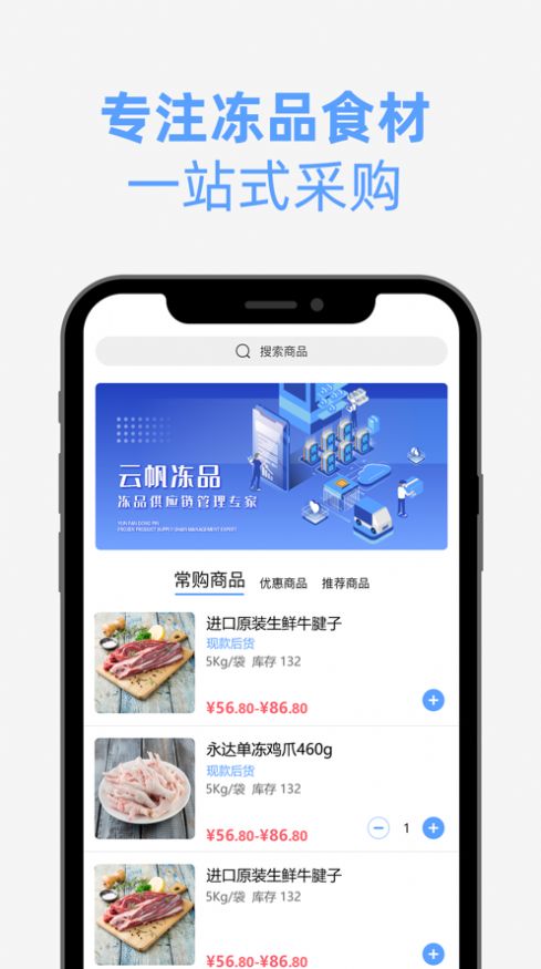 云帆冻品优采app这是一款冻品销售平台,为大家提供了非常多优质的相关商品,与品牌商合作,渠道来自上游厂商的冻品优质食材,大家可以放心的来下单,精选商品,每天还为大家提供优惠信息,放心购买,质量有保证,需要的用户可以来购买你需要的冻品。