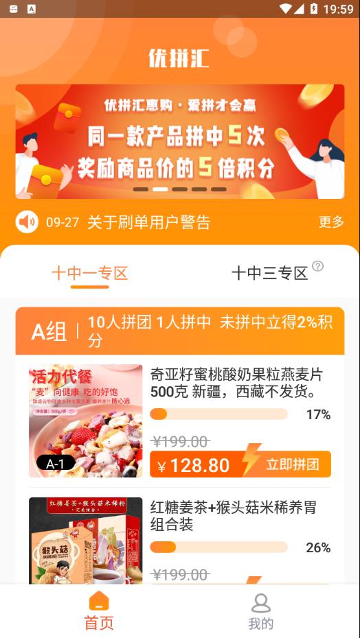 3、优惠汇购是一款通过好友的分享或直接在商城中选择商品参与团购。