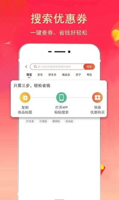 淘客联盟返利APP是款多功能的手机购物平台,涵盖了多种类型的产品资源,让你轻松在线购物省钱,满足不同用户的网购需求,让你随时随地在线进行选购,超多福利等你来领取下单,是大家购物必备的神器,让你轻松在线购物哦,下单前记得先领券,超级优惠。