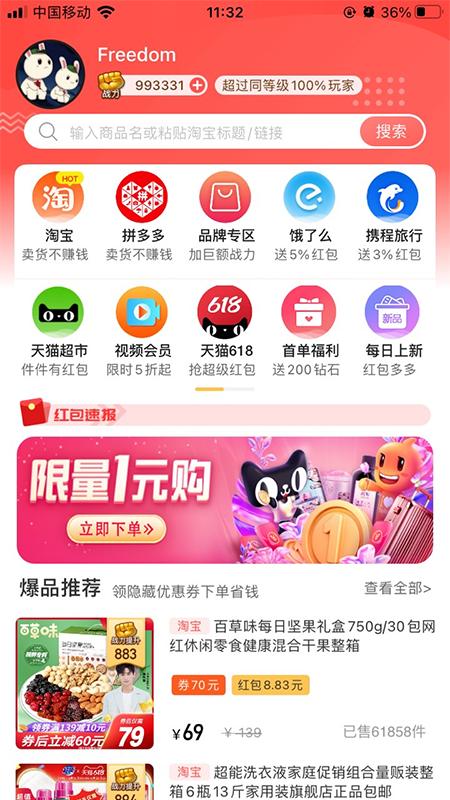 1、一款很多人都在使用的线上购物平台,所具有的各种商品资源是比较丰富的;