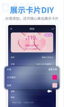 纪念日:记录情侣纪念日的日期,并显示已发生的天数,爱情计时器。