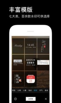 3、特色、心情、人像、天气、地点、时间、美食7大类百余款水印。
