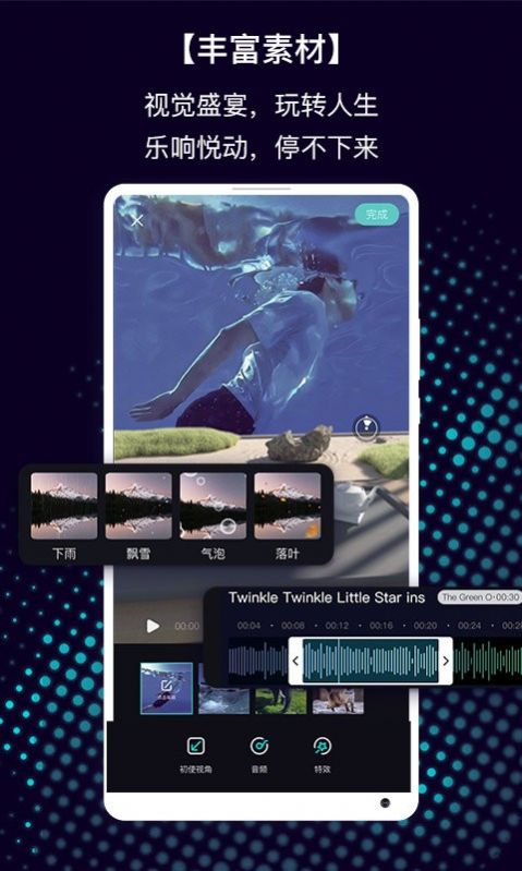 4、提供不同音频,特效,滤镜等,让你的作品创作更栩栩如生。