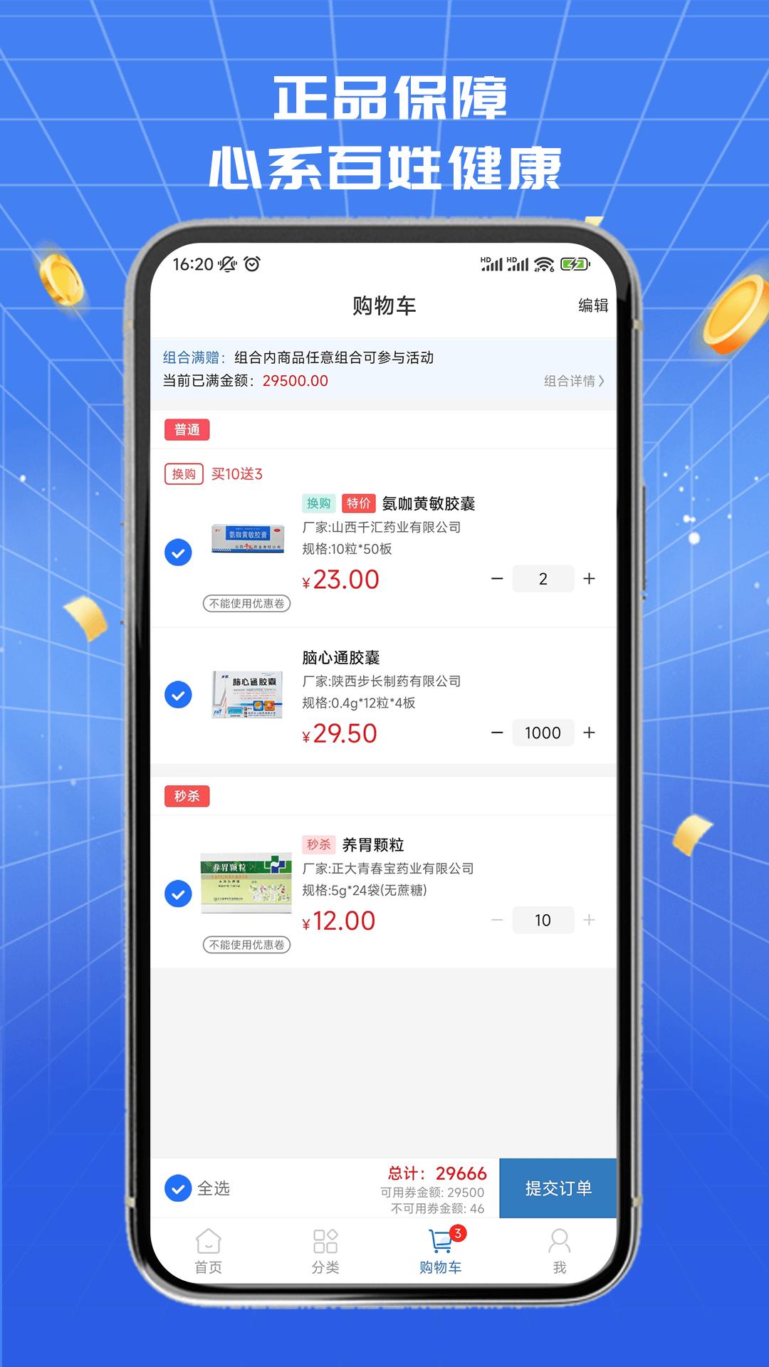3、实时更新最新的药品价格,透明公开无差价,让大家购药更加的省心。