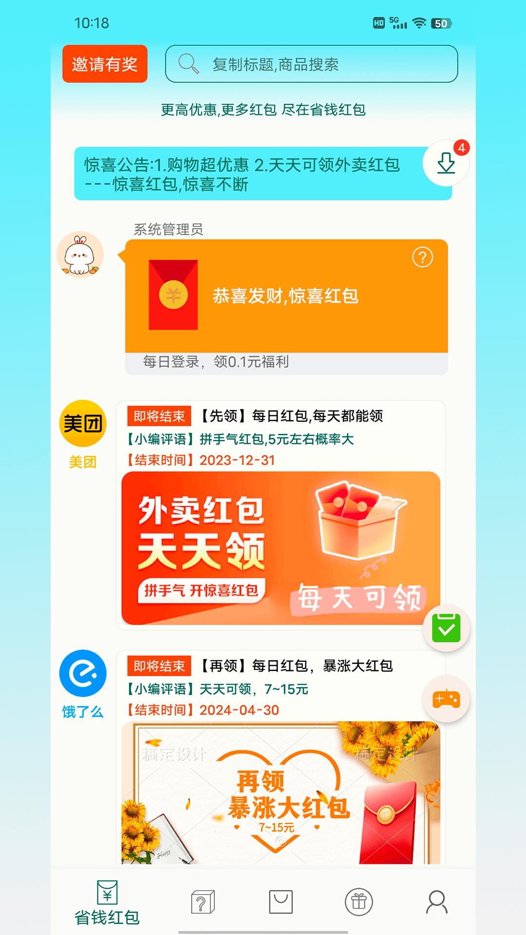 省钱红包app是款十分优惠的网购商城软件,各类产品都有返利福利,可以输入连接一键查询返利的金额,针对不同的产品价格,返利的金额也是不同的,随时随地在线购物下单,让你购物不仅省钱还省心,支持全网比价比货,任你在线轻松选购自己需要的商品,福利多多,优惠多多哦。