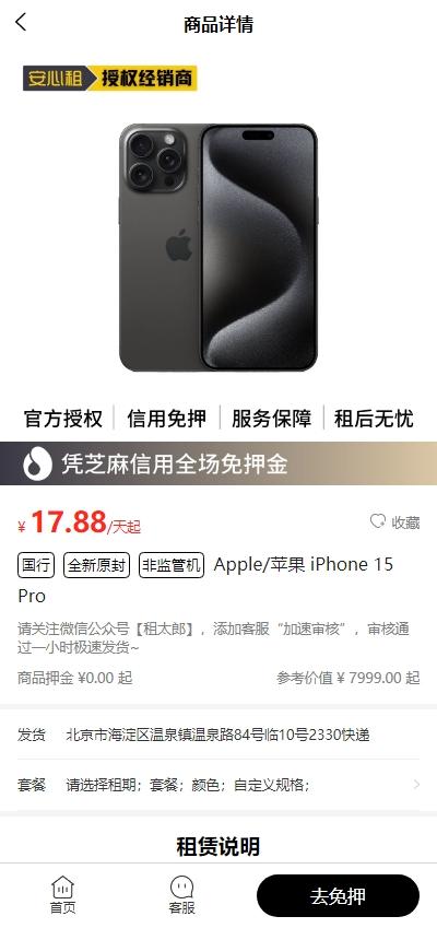 2、租借押金和你的个人信用分有关,信用分够高的话,可以直接免押金;