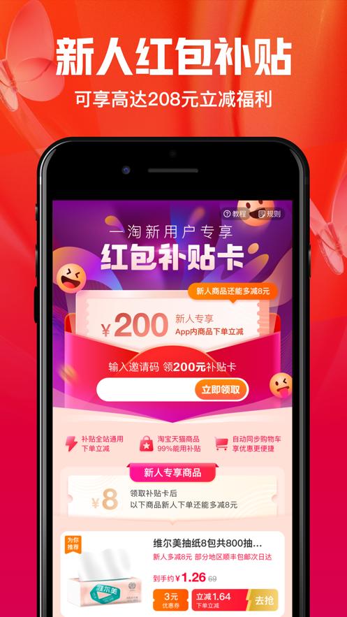 3、新用户领218元补贴,一淘独宠你!