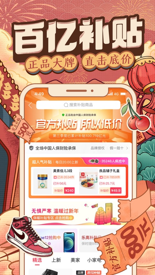 2、百亿补贴:精选补贴全网最热销品牌商品,直接降价,购物不必做算术题。