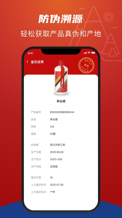 2、真假识别功能,可以将酒的码进行扫描识别,官方认证;