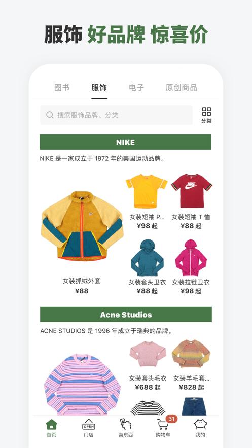 3、品类丰富的二手书、服装和电子产品,均由多抓鱼消毒和翻新,价格 2-4 折,用划算的价格买到真正的好东西。