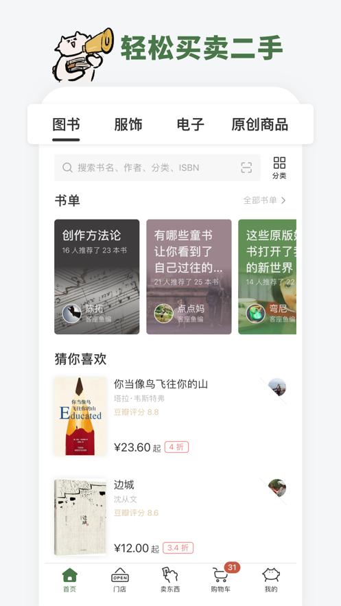 很有意义的一款二手书籍买卖平台,通过回收和翻新二手书籍,有效的循环生活耐用品,既减少了资源浪费,也能够充分的利用各类书籍,让闲置的书籍有一个好的去处,让需要的用户能够以低价购买,何乐而不为呢!