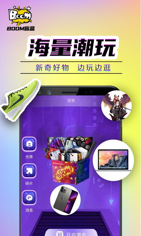 1、boom盲盒是一款集潮玩手办,时尚美妆,3C数码等便利服务软件;