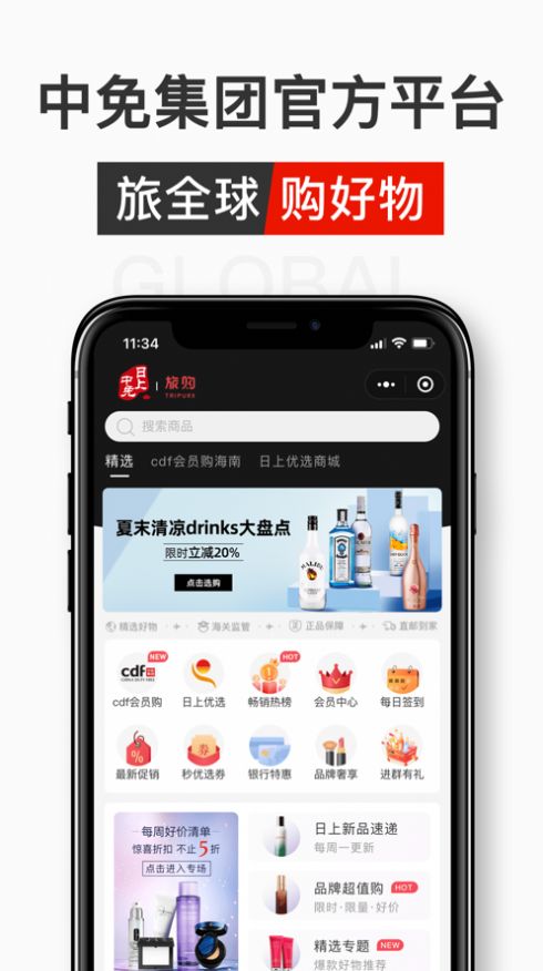 1、中免集团官方平台,提供会员优惠券领取,海量免税商品搜索平台。