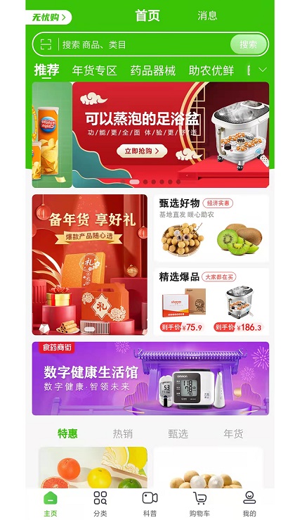 1、这里汇聚了海量的药食商品,可以随时在线购买;