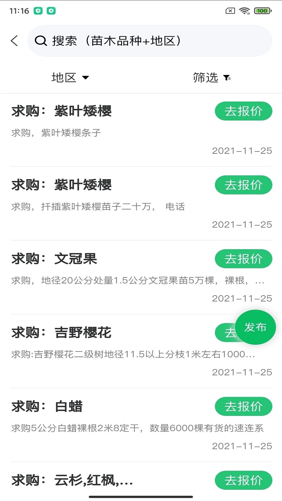2、发布求购:任何苗木采购需求可以发布到求购大厅,方便他人直接在线报价,快速对接优质资源。