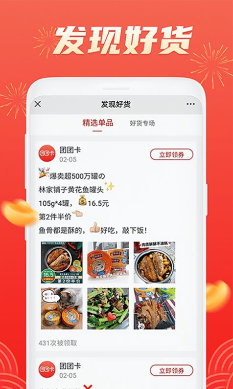 团团卡App是一款手机在线购物省钱必备神器,拥有海量优质的商品货源,各种类型的商品都一应俱全,满足所有用户的购物需求,每天都会发放大量的优惠券福利,更多商品折扣活动,十分优惠,喜欢购物的用户快来下载使用吧。
