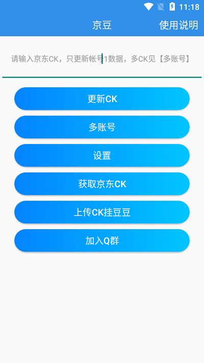 1、在输入框中输入京东Cookie然后点击【更新CK状态】按钮。