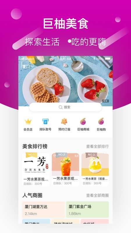 巨柚美食APP是一款能有团购优惠的生活类软件。软件主打美食优惠,通过团购获得线上的优惠活动,以优惠的价格享受优质的服务。每天不知道吃什么,那就打开巨柚美食看看吧,软件会根据用户的定位,给排列出附近最好吃,点击量最高的美食。