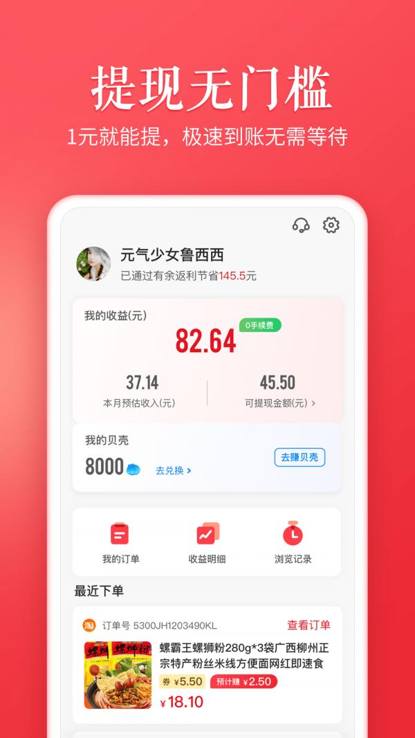 2、单单都赚钱:平台补贴,全网商品都返利,每次购物都有一些奖励。