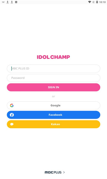 1、下载完成之后打开,同意权限之后就会来到登录界面,点击mbc plus id进行注册。