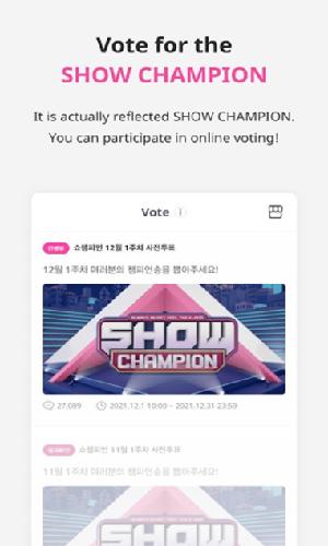 IDOLCHAMP是一个专注于偶像文化的平台,它提供了一个能让粉丝与偶像互动、交流的空间。这个平台涵盖了多种内容,包括但不限于偶像资讯、粉丝互动、周边商品销售等。在IDOLCHAMP上,粉丝可以获取到偶像的最新动态、参与偶像相关的活动,还可以与其他粉丝交流心得,分享对偶像的喜爱之情。此外,平台还销售与偶像相关的周边商品,如签名物品、限量版商品等,满足粉丝的收藏和购买需求。