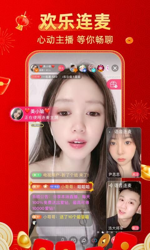【超多玩法】唱歌、跳舞、脱口秀、游戏、聊天互动应有尽有。还有映客、六间房、秀色、么么直播等来的高人气主播等你来玩!