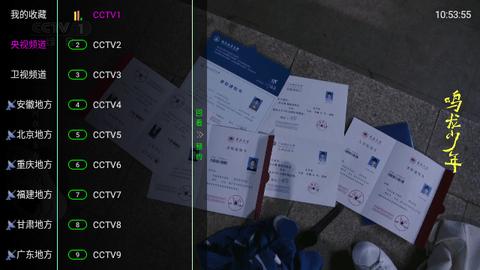 2.所以我们打开左侧的菜单来,就可以发现这里会有大量的电视直播频道,像央视和地方卫视,我们都可以快速找到