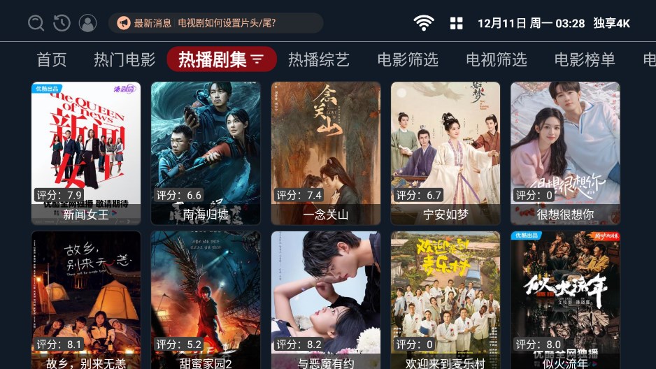 2、还有用户最关注的电影、电视剧、综艺、纪录片等分类标签。