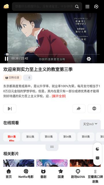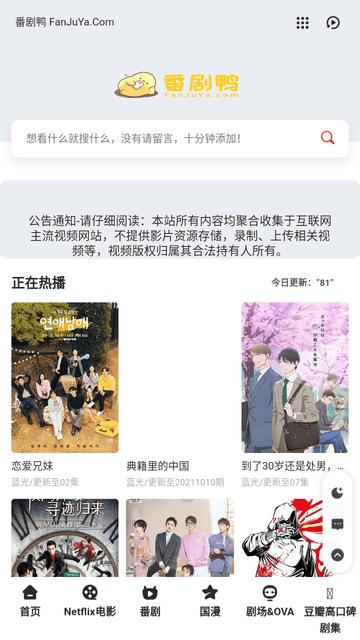 番剧鸭是一款全新的动漫追番软件平台,拥有丰富的动漫影视资源,满足不同用户的喜好,在这可以通过搜索关键词来看自己喜欢的动漫资源,非常的方便快捷,番剧鸭当中没有任何广告打扰,你能在这里找到你所有想看的番剧,各位热爱追番的伙伴们还在犹豫什么呢?赶快下载试试看吧!